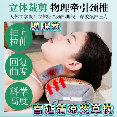 【宫廷清凉枕/艾草枕】艾草枕助眠颈椎枕头多功能宫廷透气两用艾绒枕藤席